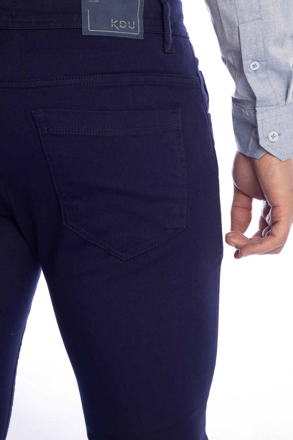 A calça de sarja marinho tem modelagem slim fit e elastano na composição para garantir o máximo em conforto. A modelagem five pockets é mais casual. Combine com polos, camisetas ou camisas.