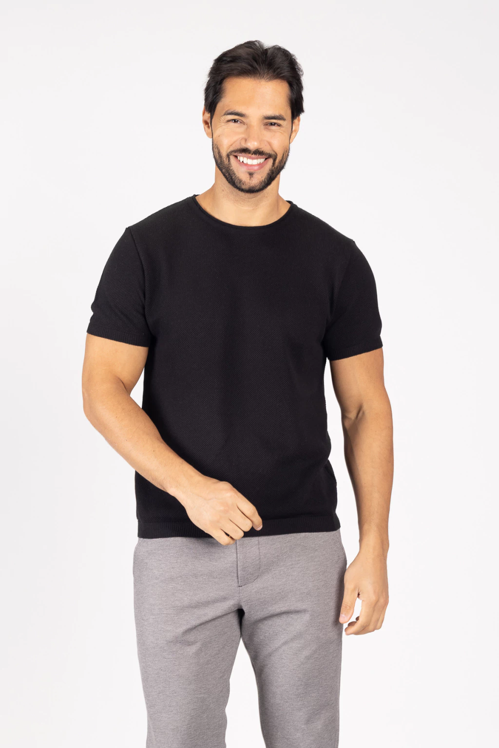 · A camiseta tricot gola olímpica preto é a escolha perfeita para quem busca conforto com um toque de modernidade. Com modelagem ajustada e acabamento refinado, essa peça oferece versatilidade para diferentes ocasiões. Pode ser usada com calça de alfaiataria para um visual elegante, combinada com jeans ou chino para um look casual sofisticado, ou ainda sob um blazer para um estilo smart casual impecável. O tricot leve proporciona toque macio e excelente caimento, garantindo bem-estar ao longo do dia. Ideal para o homem contemporâneo que valoriza praticidade sem abrir mão da elegância.