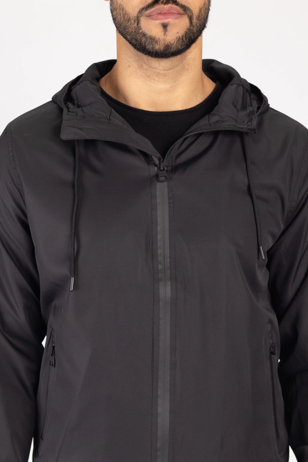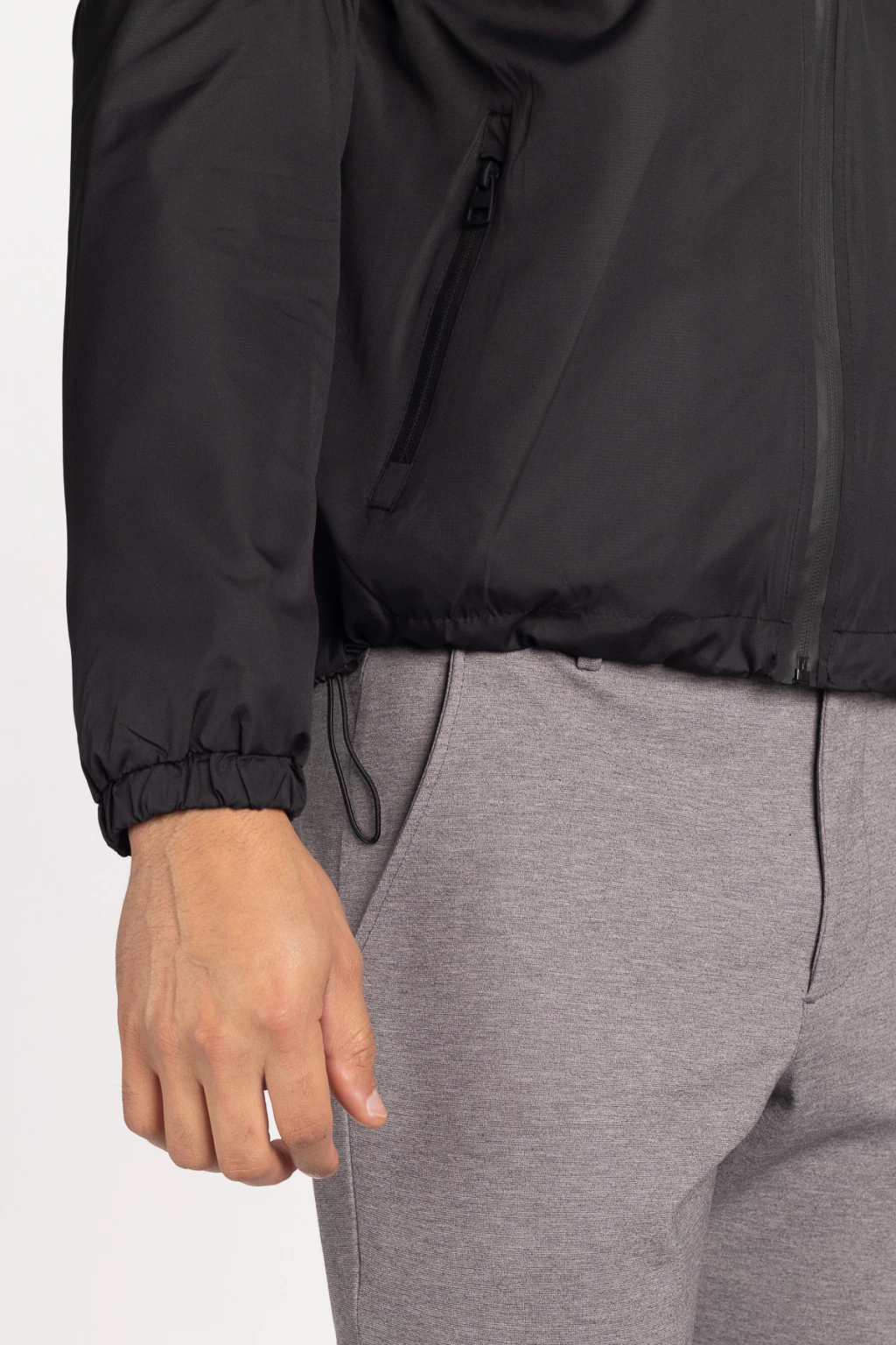 · Jaqueta Masculina em Nylon com Capuz Preta – Forrada e com Ajuste na Barra