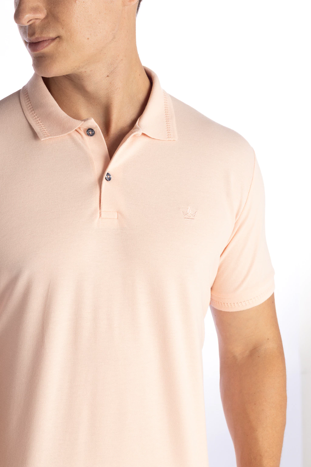 · Estilo: Polo rosa piquet com elastano, vista com dois botões, punho na manga e sem bolso