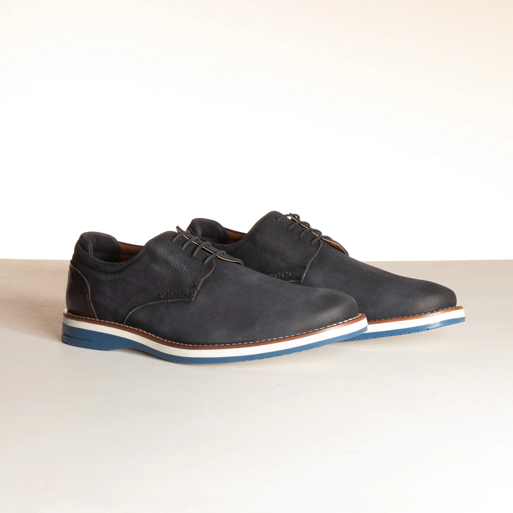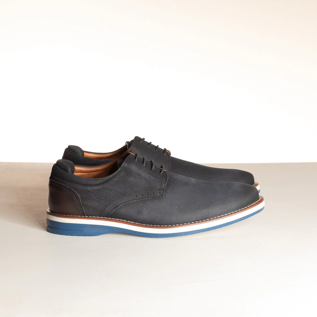 Sapato Casual Camurça Garbo com detalhes em couro. Cadarço elástico e solado de borracha para maior conforto.