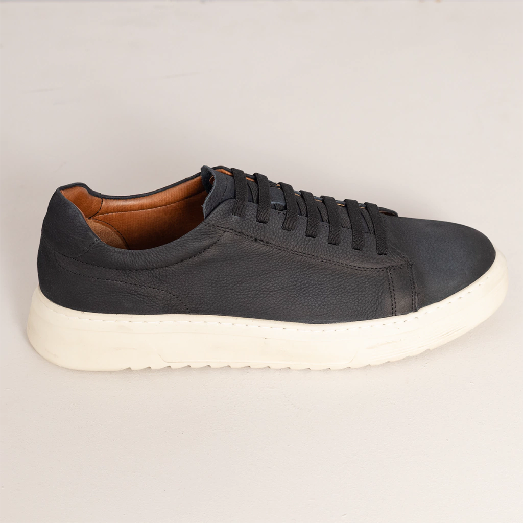 Descrição: Tênis casual em camurça marinho Garbo com cadarço elástico. Solado alto em borracha.
